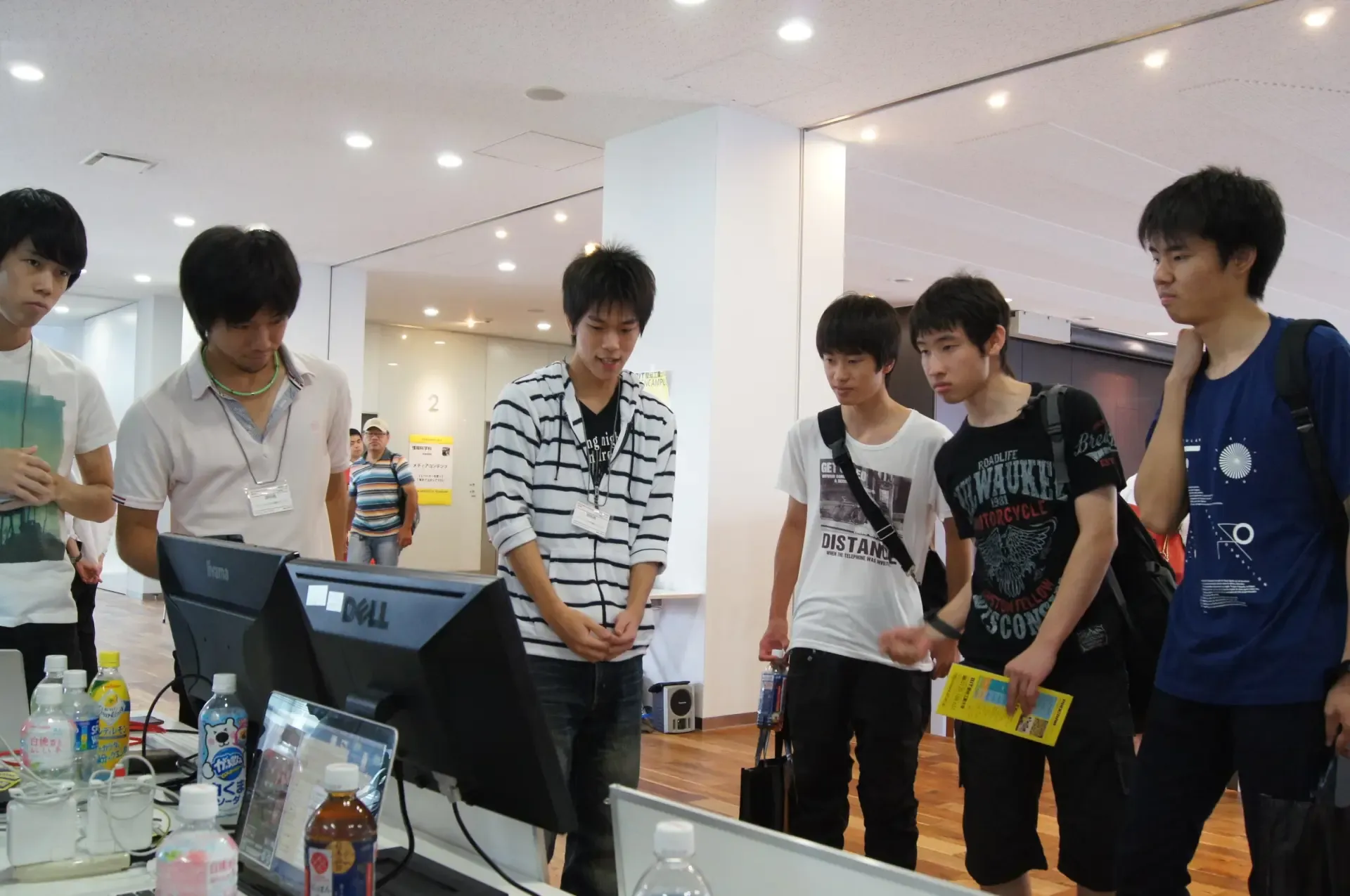 2016年7月23,24日に愛知工業大学オーブンキャンパスが開催されました. 梶研でもpdr班とリズム班が成果物を展示しました. PDR班では最近話題のあのゲームを使った作戦が刺さり,多くの方に見学していただきました. GPSでは出来ない屋内位置推定のメリットを上手く説明できたと思います. リズム班では来てくださった方々にリズム認証アプリを実際に体験していただきました. 体験者からは「これ欲しい」などの声もあり,リズム認証でアプリを操作することの便利さを伝えることができました.