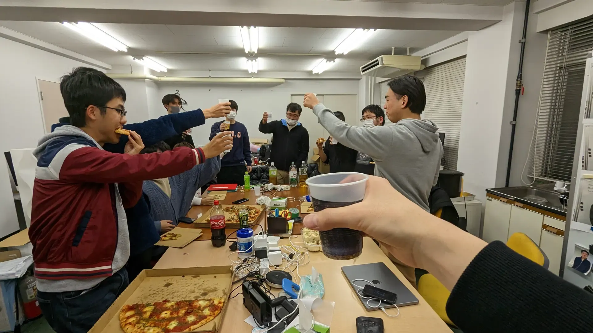 卒論締め切り前日は,B4のメンバー全員と院生数人が研究室に泊まり込み,執筆と確認作業を行っていました. この時に1人のB4の子のmacが突然充電できなくなり故障するという事件が発生しました. 幸い論文のデータはGithubに上がっており,素材のデータもバッテリー駆動で動くうちに退避できたので被害は最小限に抑えられました.