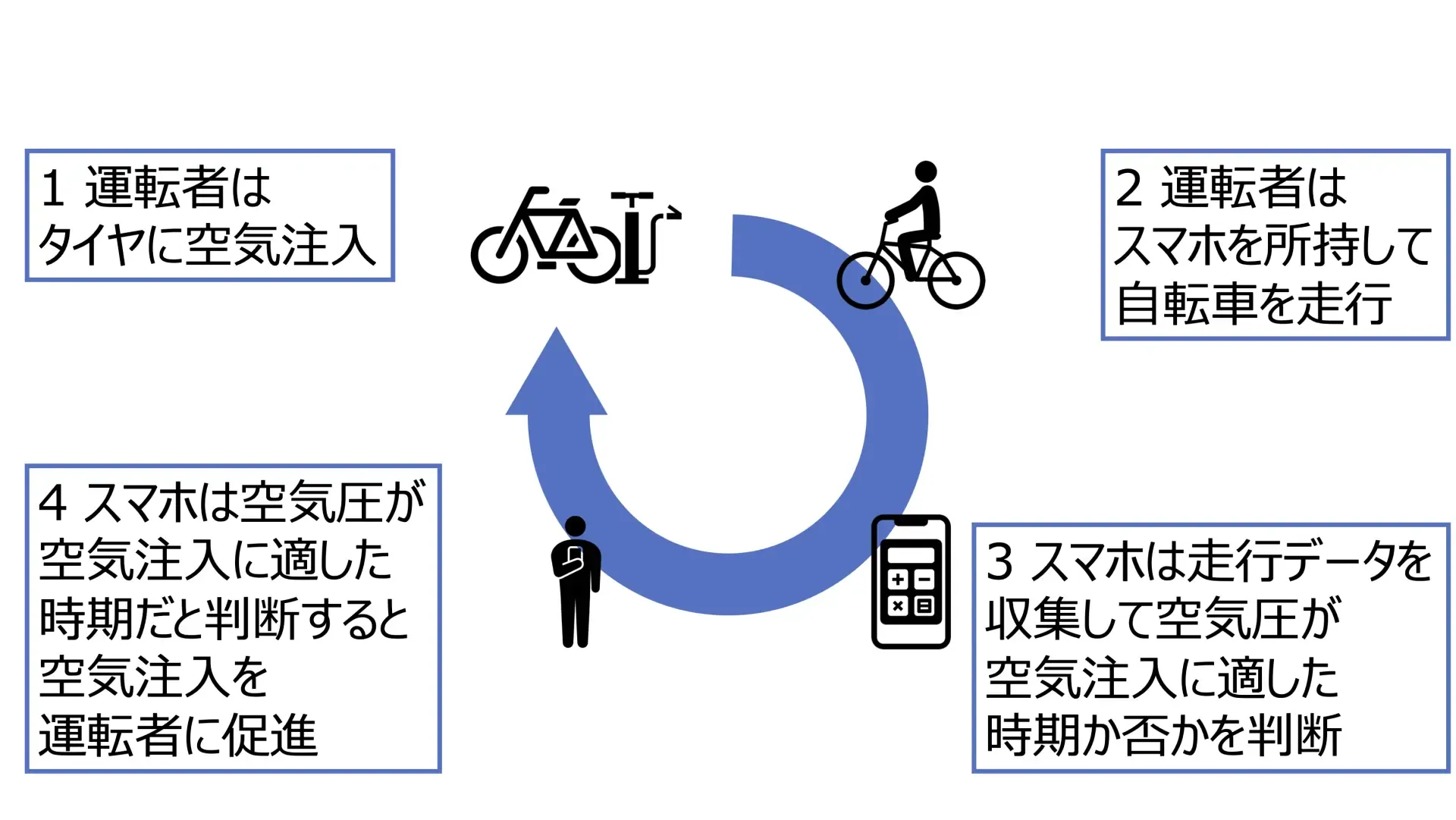 走行前に自転車点検を毎回行う人は少数で,走行中に事故やヒヤリハットを経験する人がいる.このような経験をする人を減らすために,自転車点検を運転者に促す必要がある.様々な自転車点検がある中で,本研究は空気圧点検に注目した.本研究ではタイヤの空気圧低下に伴うタイヤのクッション性の増加から,身近にあるスマホのセンサを用いて低コストで行える空気圧低下推定手法を提案する.地面に対して垂直方向の加速度をスマホで取得し,標準偏差と周波数成分を特徴量としてランダムフォレストなどを用いて空気圧低下を推定する.空気注入が必要か否かの分類と空気圧の値を推定,他の場所・自転車の学習データを流用可能かの評価実験を行った.評価実験の結果,空気注入が必要な時に正しく分類できた割合は96.1%だったが学習データの流用は困難だと分かったため,空気圧低下推定には同じ場所・自転車のデータを用いる必要がある.